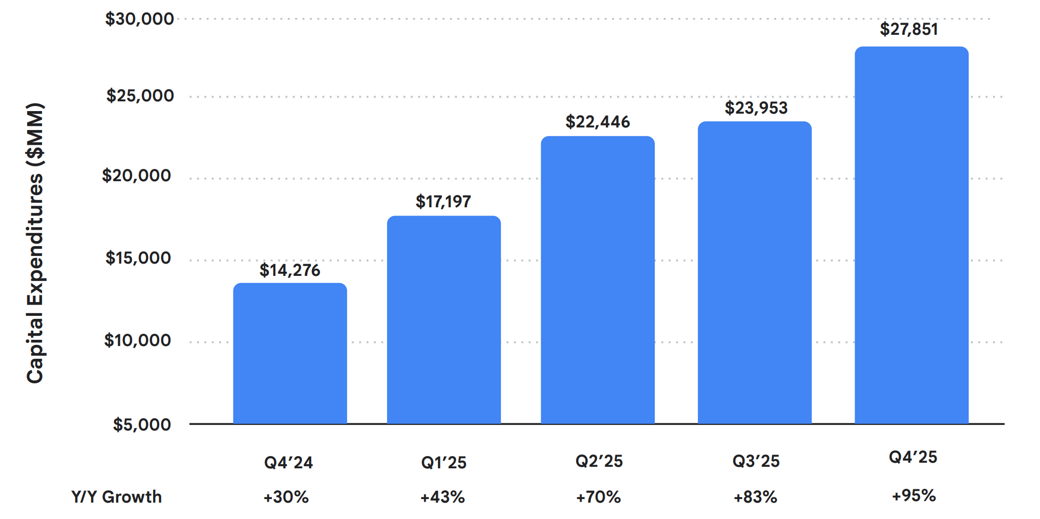Everything comes at a cost, and for hyper-scalers like Google, Meta, and others, capital expenditures have been in focus for a while now. In Q4, the company’s CapEx nearly doubled from around $14 billion in Q4 2024 to more than $27 billion, for a full-year total of approximately $91 billion.